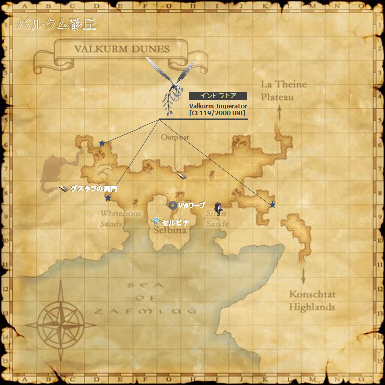 - ウェイポイント・VWのワープでダングルフの涸れ谷⇒南グスタベルグ(E-7)