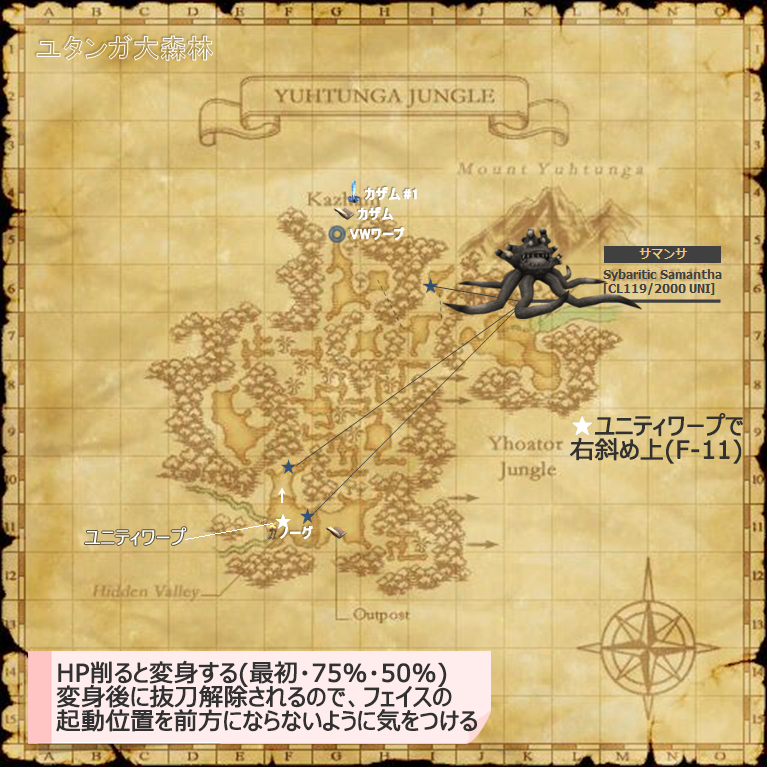 - アウトポスト(Survival Guide)や海蛇の岩窟(ユニティポイントワープの出現地点)