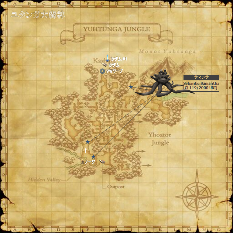 - アウトポスト(Survival Guide)や海蛇の岩窟(ユニティワープ出現地点)から (F-11) テンキー5 が近い。