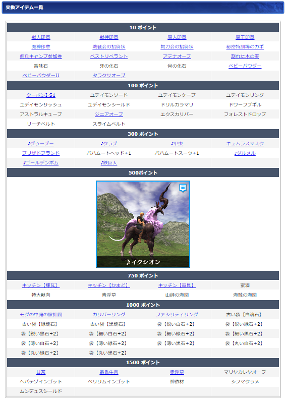 - 大冥宮の星わ、90,000ガリモで交換可能