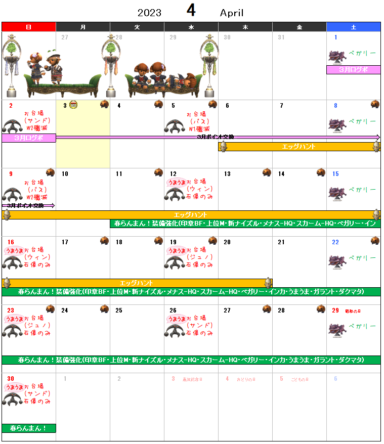 - 期間:11日(土)0:00頃~04月02日(日)23:00頃迄