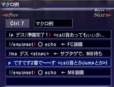 ※ひとつのマクロに、equipset2個つかうと、ラグで、着替えなかったりするので