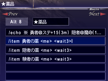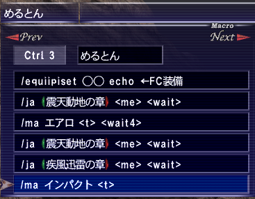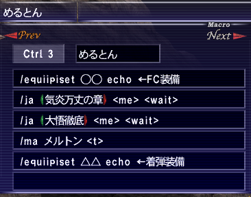 - タイミングが自信ない場合。連携開始時の1行目のFC装備を、薬品のマクロに移動させて