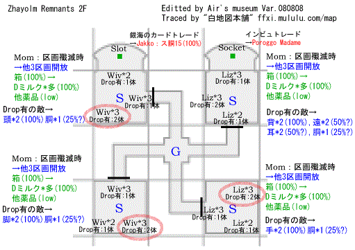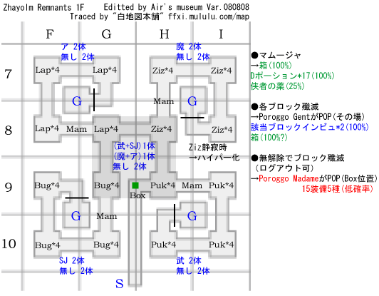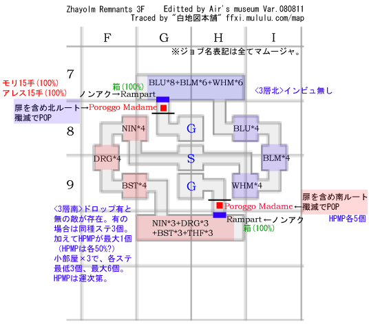 1部屋のなかに、1匹が武器サポ、1匹が魔法アビ、残り2匹がドロップ無し - NMやらないなら、インビジして北東ゴールへ。