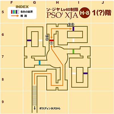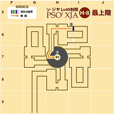 結界・赤 → 紫 → 赤 → 紫 → エレベーター →