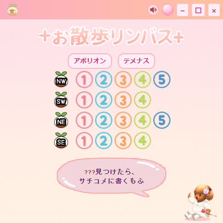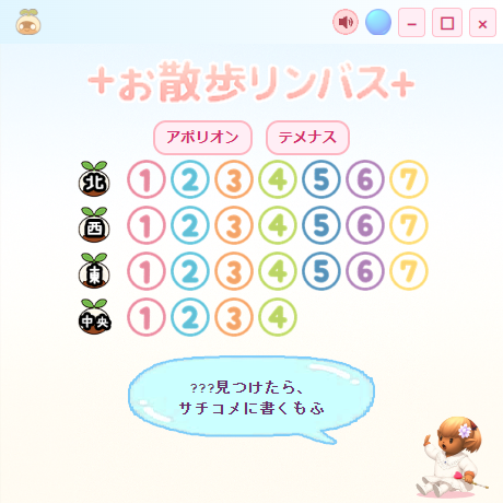 行きたいエリアの数字をクリックすると、別ウィンドウでマップがひらくもふ♪