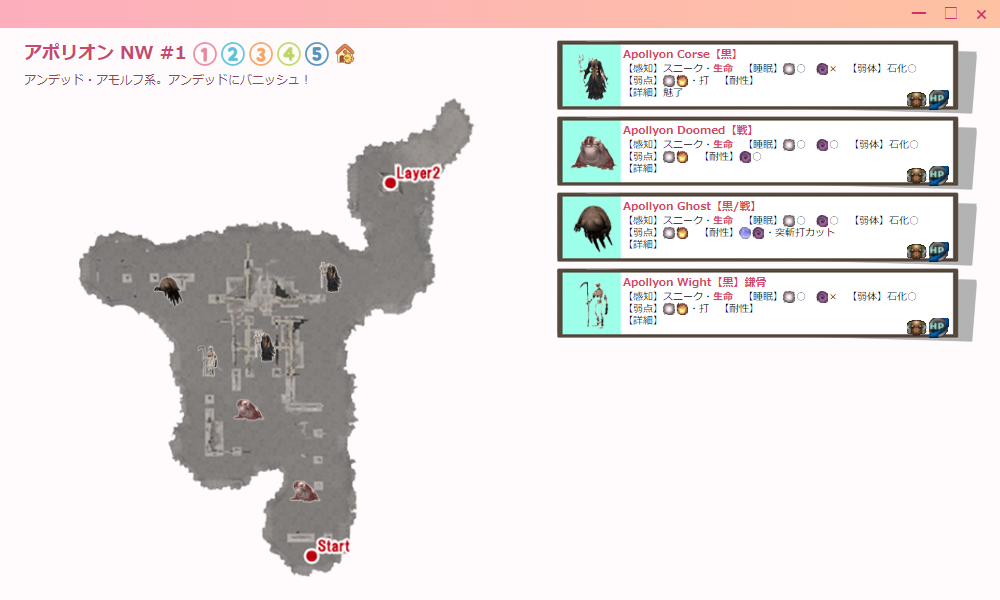 マップウィンドウの数字ボタンで別の階層。ホームボタンで、メインウィンドウ。