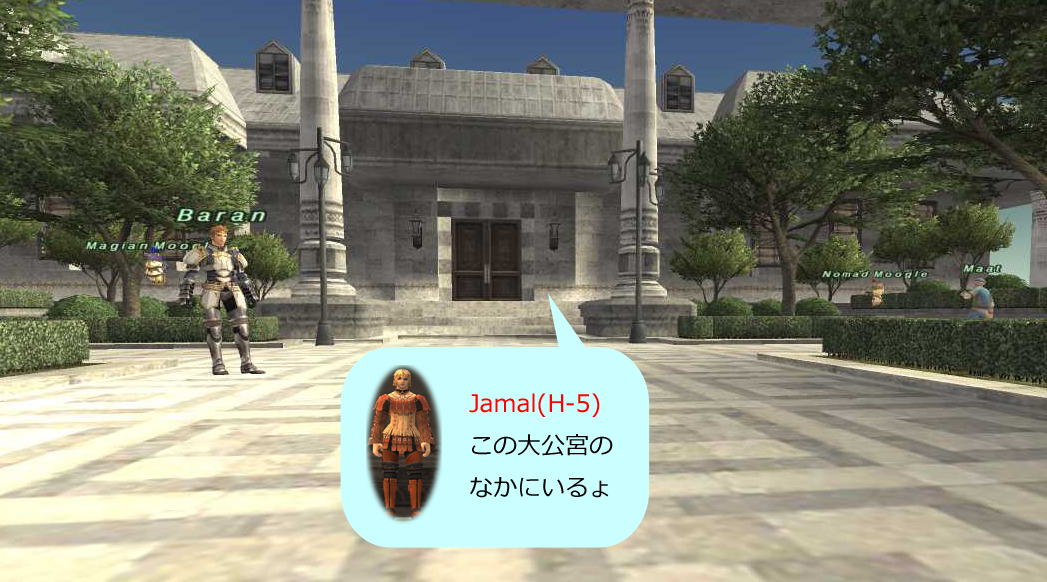 - ル・ルデの庭(H-5)の大公宮(Door:Archduke's House)内にいるNPC"Jamal"に話しかける
