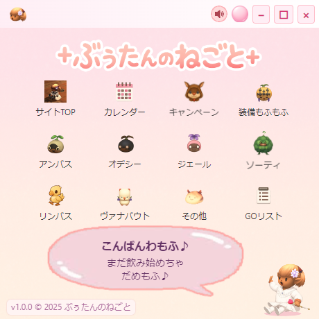 それぞれクリックすると、対応するウェブページが別ウィンドウで開くもふ