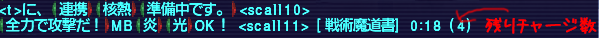 ⑥ PT会話にて、MB開始の合図+チャージの残量 <recast=戦術魔道書>で、リキャ表示だょ。 |