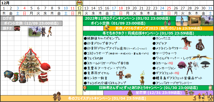 - 期間:13日(火)~01月05日(木)23:59頃迄