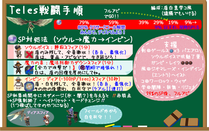 風① | ジオヴェックス・インデフォーカス (エントラ)ヘイスト① クラーサクに、ディスペル | HP残り15%で同時に(ボルスター) (エントラ)切れた場合、次の担当わ 魔力の泉モードの時にかける |
