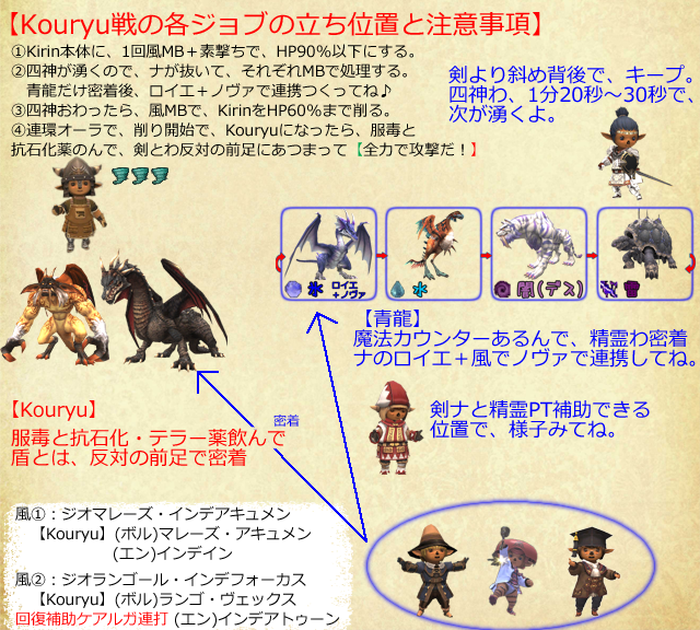 Kouryu時に、わんふぉ - ナ:前半の四神処理で。後衛に被害がイカないように、