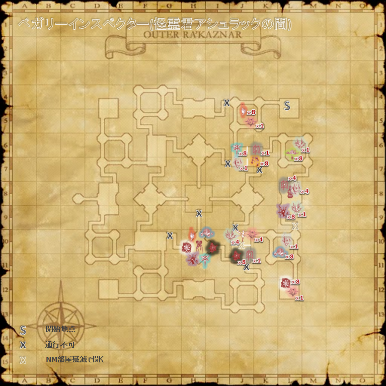 魔法感知のみで、ノンアク - NM+亜種のエレメンタル4種×(4体+4体+8体+1体)