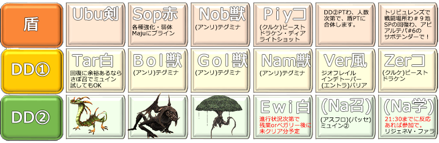 Yakshi (ヤクシーの巻物) | ![]() | ![]() ![]() | 盾:聖水必須。開幕からフルアビ。全部使って。 バッタフルアビで、獣マスターも頭割り被弾。 回復補助よろしく。 | ヒッドヘーグの鱗x1 |