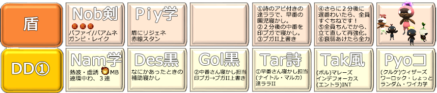 - (開幕)盾がわかしたら、詩:(ナイトル・マルカ)達ララIIで、雑魚@早番4匹を寝かせる。