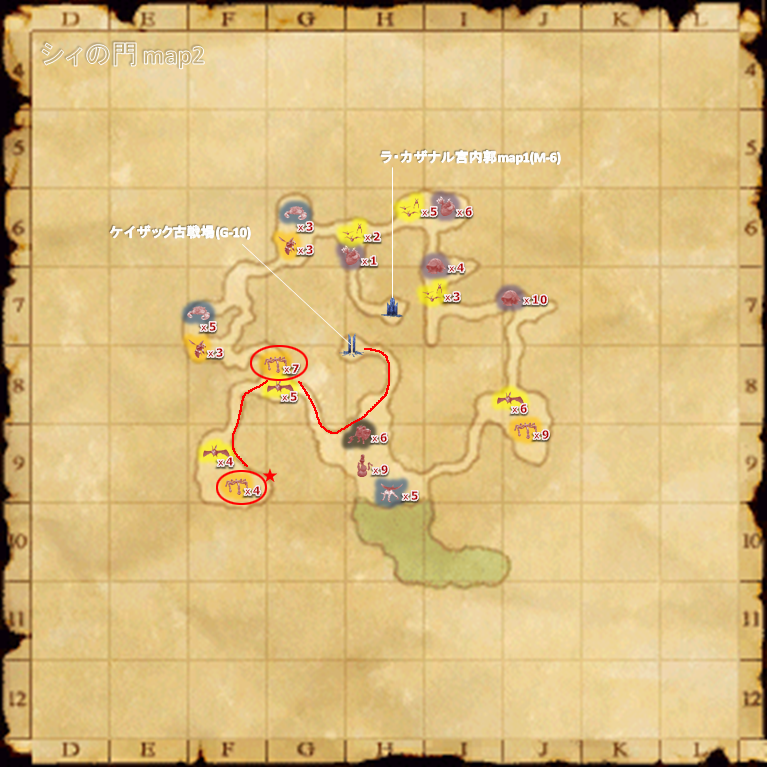 - ケイザック古戦場#1から○の???(F-11)へ(インスニなし:夜間あんぶり?)