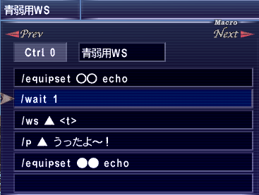※ equipsetわ、一つのマクロ内で2つ使う場合わ、wait1以上の間隔が必要です。