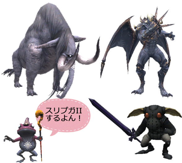 使用魔法 攻撃系 範囲ドレイン・Ⅳガ系・メテオ 弱体系 範囲アブゾ系・バインガ・パライガ・ブライガ 青魔法 マイティガード・各複合エレ魔法 SPアビ 連続魔(複数回) - 戦闘終了後に、イベントが発生して終了。