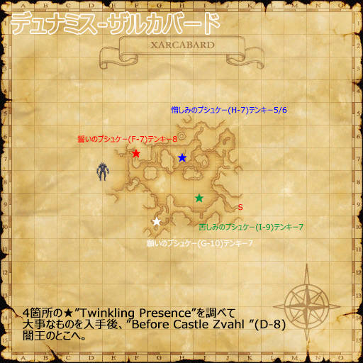 - デュナミス-ザルカバードで、4箇所の"Twinkling Presence"を調べ、だいじなもの